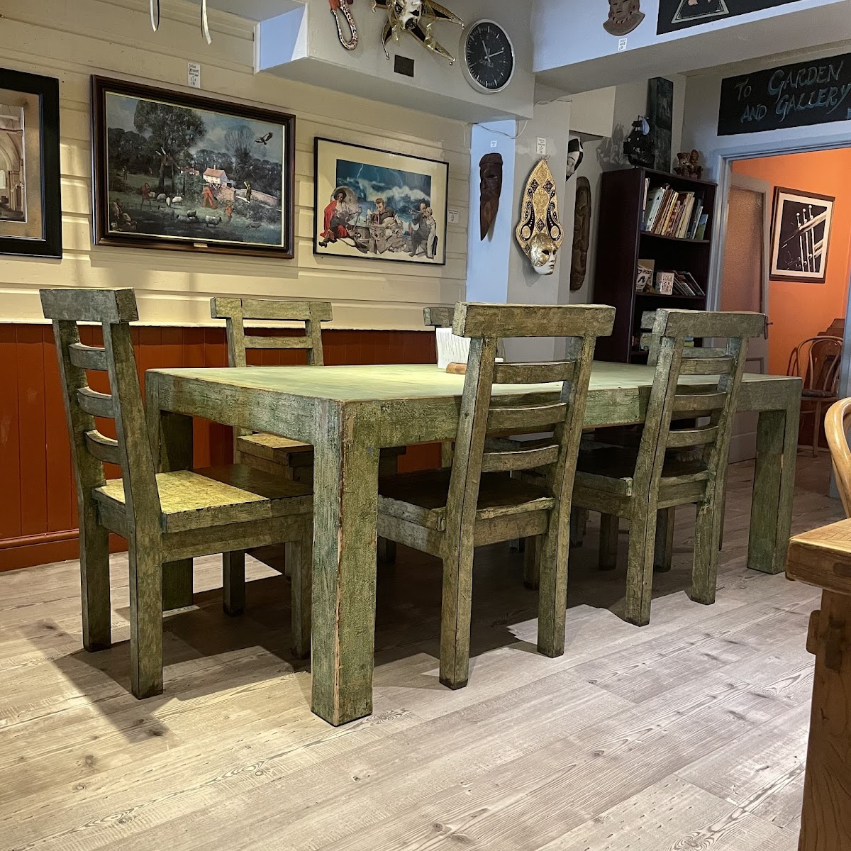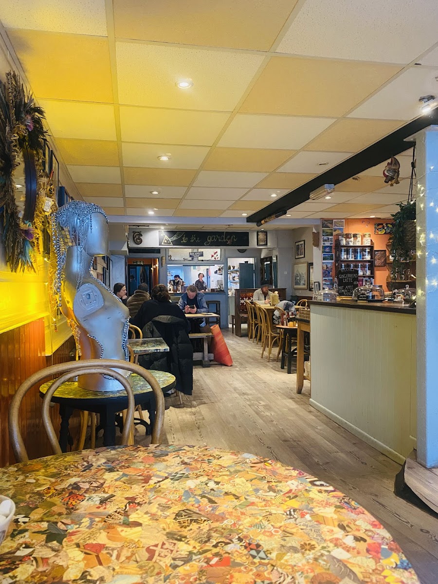 A quirky café (licensed) with interesting original artwork on the walls (much of which is for sale at very reasonable prices) and friendly, helpful staff. The food was delicious and, if you don't mind the wait for freshly cooked fare, well worth the cost. Awareness and catering for coeliac diners was very good. Dog friendly. Definitely recommended.