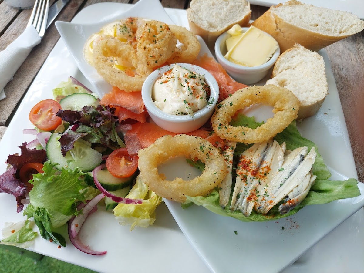 Superb French Onion Soup (on the specials) the Mezze was fresh and tasty. Great staff. Quick service. Nice place to relax. Plenty of wall art available for purchase. Prices good.